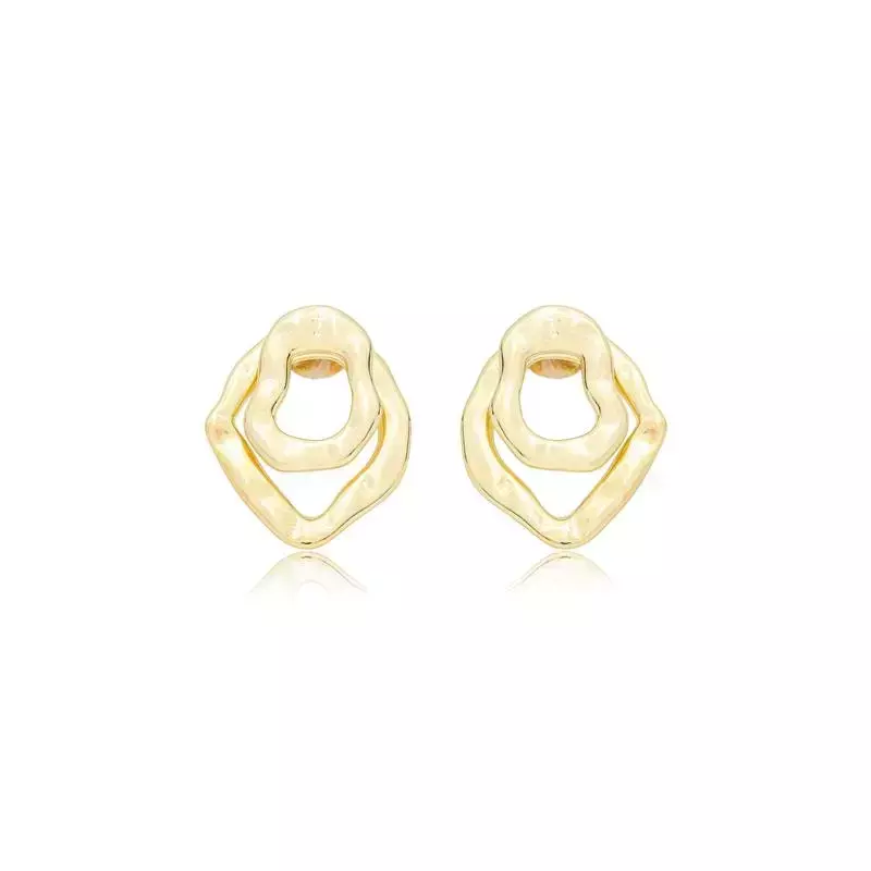 Brinco Oval Orgânico Vazado 4 peças Ear Jacket com Banho em Ouro 18k.